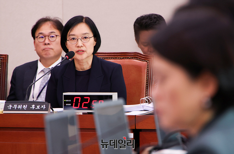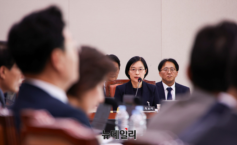 한성숙 중소벤처기업부 장관 후보자가 15일 오후 국회 산업통산자원중소벤처기업위원회에서 열린 인사청문회에서 의원들의 질의에 답하고 있다.