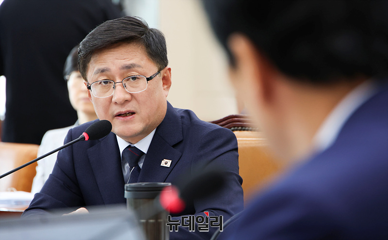 김성환 환경부 장관 후보자가 15일 오후 국회 환경노동위원회 전체회의장에서 열린 인사청문회에서 의원들의 질의에 답변하고 있다.