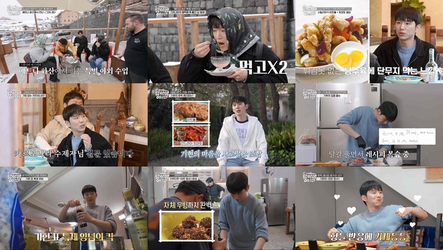현지 백반을 맛보며 필기까지 꼼꼼히 마친 기현은 숙소로 돌아와 '류학레시피'로 결정한 '미트 탕수'를 만들기 시작했다. 정확한 계량은 물론, 감칠맛을 위해 치즈를 갈아 넣거나 상대적으로 덜 매운 적양파를 사용하는 등 수준급의 요리 스킬을 드러냈고, '견과류 러버'답게 잣을 갈아 넣는 등 기현만의 '킥'을 더했다. 그런가 하면, 류수영에게 적극적인 질문을 건네며 더욱 완벽한 '미트 탕수'를 완성, 특히 기현의 특제 소스 냄새에 류수영은 "냄새가 지금 말도 안 돼. 특급 요리야"라고 극찬했다.