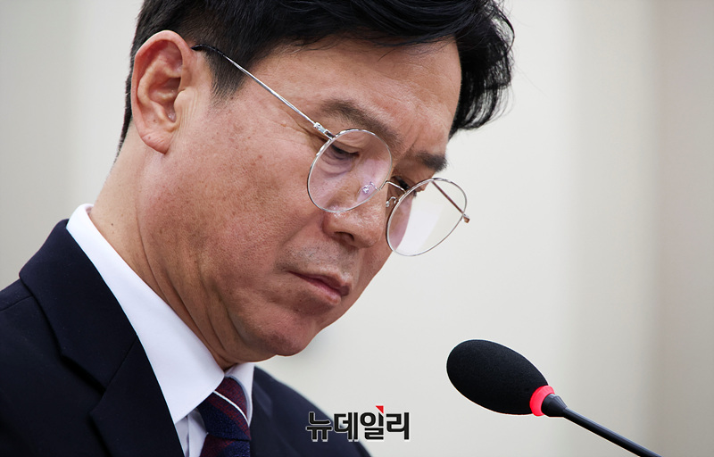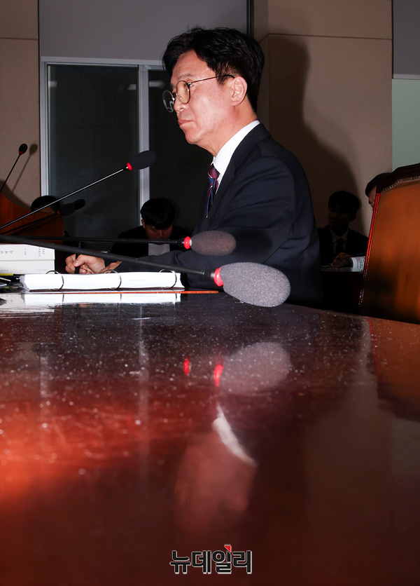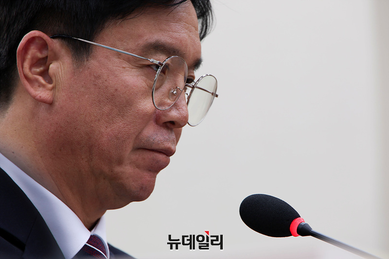 김영훈 고용노동부 장관 후보자가 16일 오전 국회 환경노동위원회에서 열린 인사청문회에서 생각에 잠겨 있다.