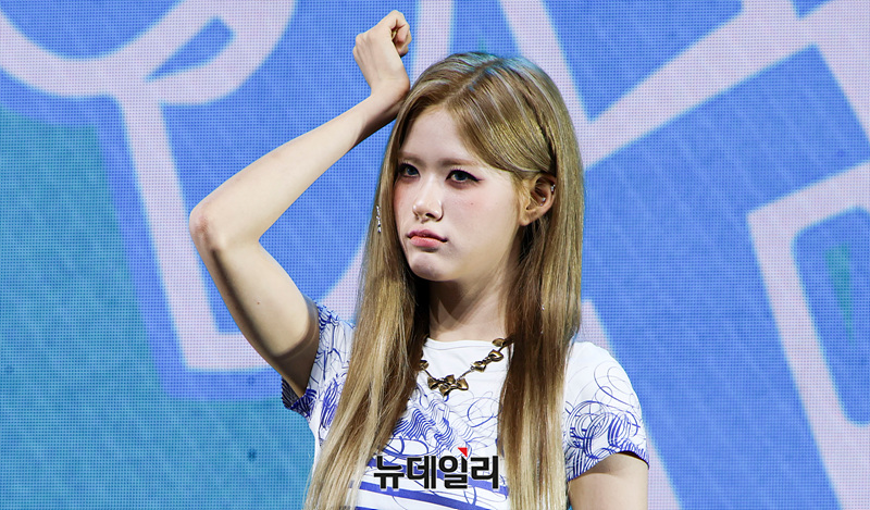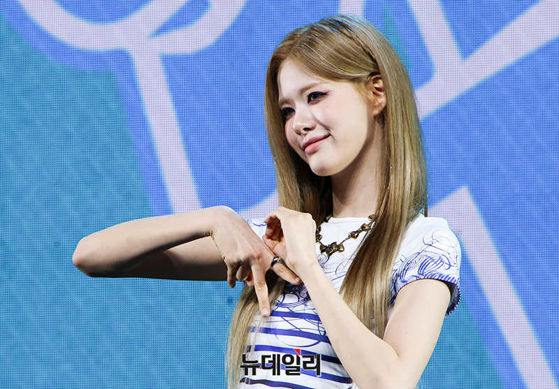 그룹 이프아이(ifeye) 라희가 16일 오후 서울 용산구 블루스퀘어에서 열린 미니 2집 '물결 낭 스윗탱(sweet tang)' 발매 기념 쇼케이스에서 포즈를 취하고 있다.