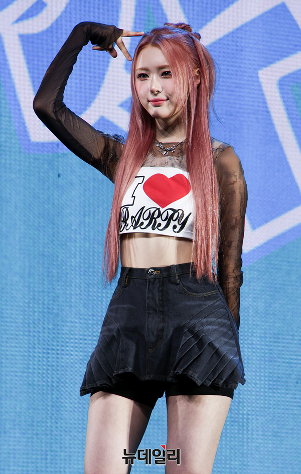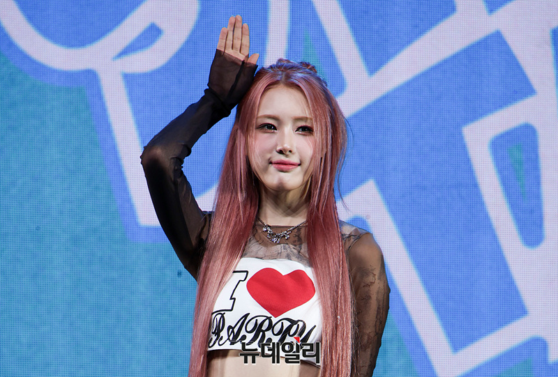 그룹 이프아이(ifeye) 원화연이 16일 오후 서울 용산구 블루스퀘어에서 열린 미니 2집 '물결 낭 스윗탱(sweet tang)' 발매 기념 쇼케이스에서 포즈를 취하고 있다.