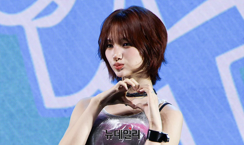 그룹 이프아이(ifeye) 샤샤가 16일 오후 서울 용산구 블루스퀘어에서 열린 미니 2집 '물결 낭 스윗탱(sweet tang)' 발매 기념 쇼케이스에서 포즈를 취하고 있다.