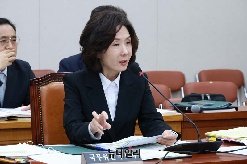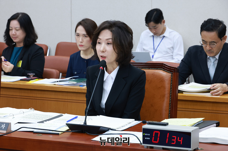 이진숙 사회부총리 겸 교육부 장관 후보자가 16일 오전 국회 교육위원회에서 열린 인사청문회에 의원들의 질의에 답하고 있다.