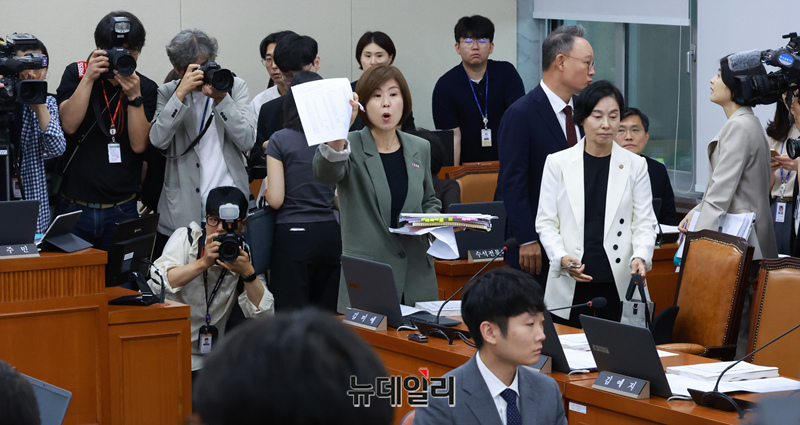[포토] 자료 관련 항의하는 김미애 국민의힘 의원