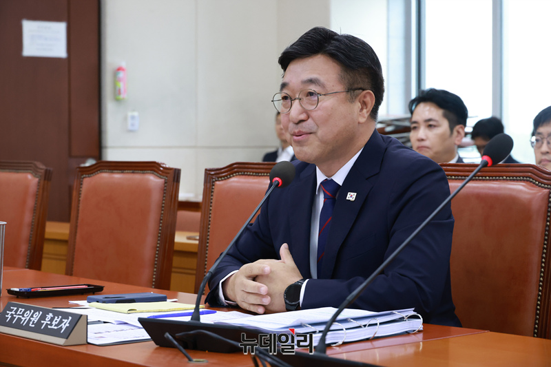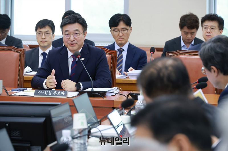 윤호중 행정안전부 장관 후보자가 18일 국회 행정안전위원회에서 열린 인사청문회에서 의원들의 질의에 답변하고 있다.