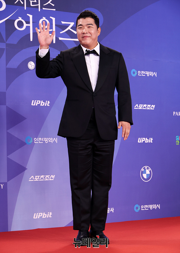 방송인 정근우가 18일 오후 인천 중구 파라다이스시티에서 열린 제4회 청룡시리즈어워즈 레드카펫에서 포즈를 취하고 있다. (인천=서성진 기자)