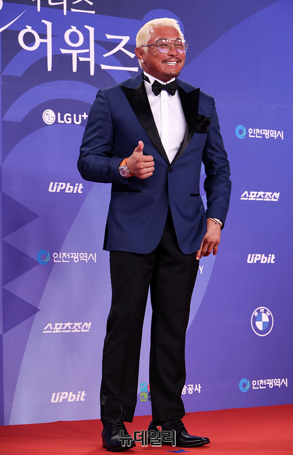 방송인 추성훈이 18일 오후 인천 중구 파라다이스시티에서 열린 제4회 청룡시리즈어워즈 레드카펫에서 포즈를 취하고 있다. (인천=서성진 기자)