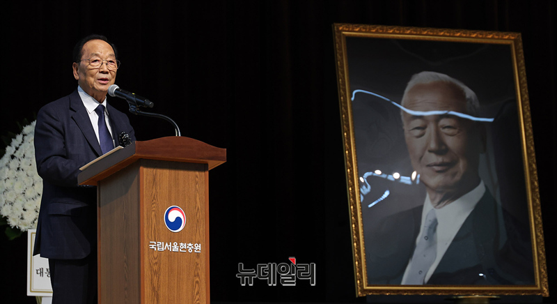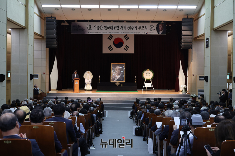 이승만 건국대통령 서거 60주기 추모식이 19일 오전 서울 동작구 국립서울현충원 현충관에서 엄수되고 있다.