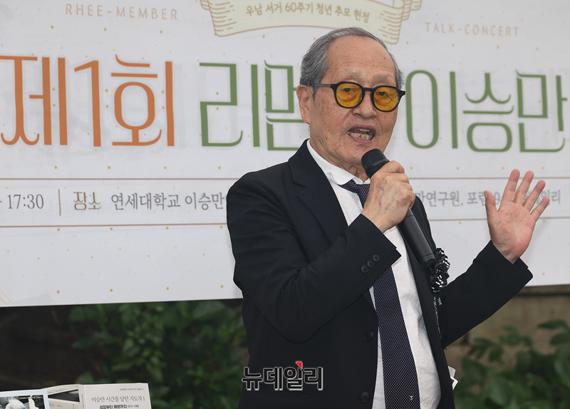 인보길 뉴데일리미디어그룹 회장이 이승만 건국대통령 서거 60주기를 맞아 19일 오후 서울 종로구 이승만연구원에서 2030청년세대를 대상으로 한 특별 기념행사 '제1회 리멤버이승만(2025)'에서 인사말을 하고 있다.이승만연구원·포럼1948·뉴데일리가 공동주최하고 트루스포럼·1776연구소가 공동주관하는 이번 행사는 대한민국의 초대 대통령 이승만과 그의 독립정신을 오늘날 청년들에게 알리는 것을 목표로 한다.주최 측은 이번 '제1회 리멤버이승만' 행사를 시작으로 앞으로 매년 우남 서거일에 맞춰 2030청년들이 다채롭게 함께할 수 있는 프로그램을 지속해 나갈 예정이다.
