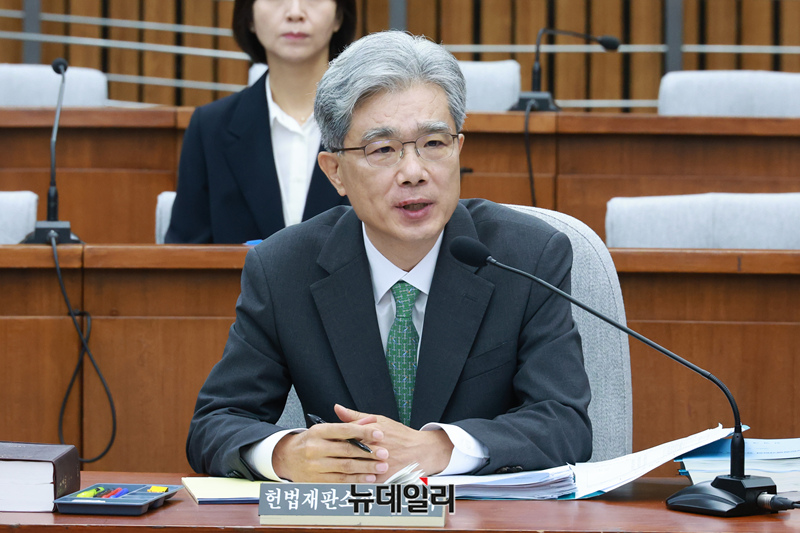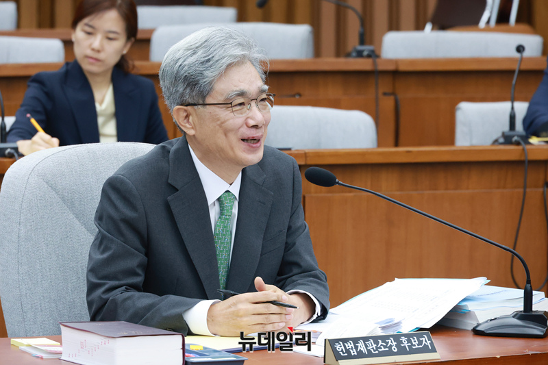 김상환 헌법재판소장 후보자가 21일 국회에서 열린 인사청문특별위원회에 출석해 의원들의 질문에 답하고 있다.