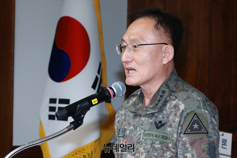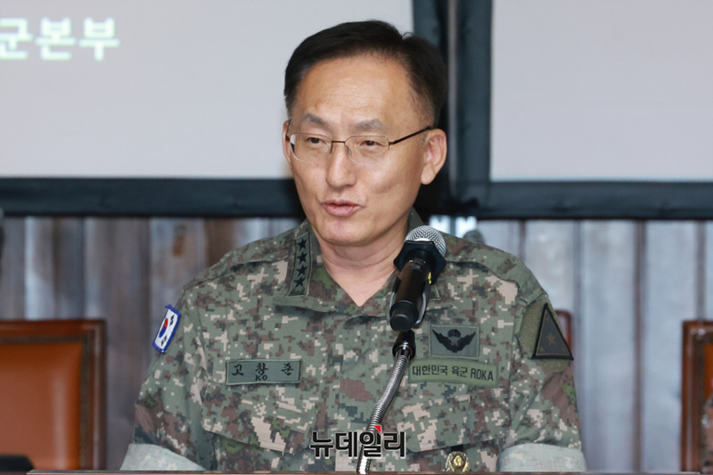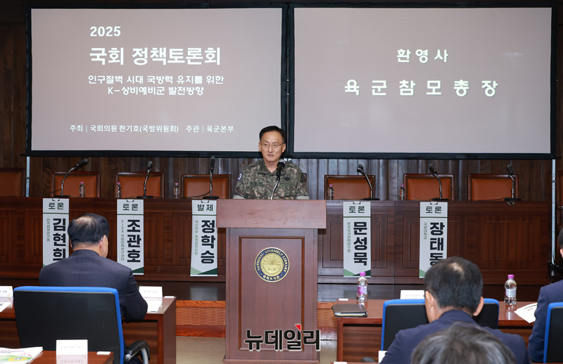 고창준 육군참모총장 직무대리가 21일 오후 국회 도서관에서 열린 '인구절벽 시대! K-상비예비군 발전방향' 토론회에서 축사를 하고 있다.