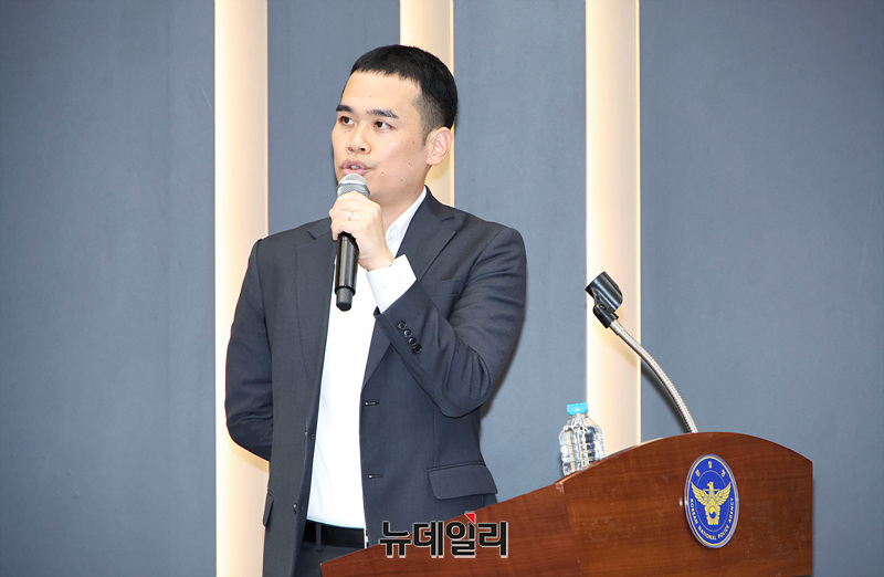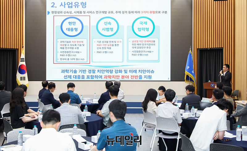 양광모 과학치안진흥센터 본부장이 21일 오후 서울 서대문구 경찰청 어울림마당에서 열린 '치안현장 맞춤형 연구개발사업 현장적용 R&D 착수보고회'에서 사업설명을 하고 있다.'폴리스랩(Police Lab)'은 국민과 공공기관, 연구자가 함께 치안현장의 문제를 발굴·연구·실증하는 연구개발 과제다. 2018년부터 시작된 과제 1.0과 2.0에서는 △보이는 112 시스템 △스마트폰 지문 식별 △112 정밀탐색 시스템 등이 개발돼 현장에 적용됐다.올해 시작되는 과제는 △AI 기반 교통사고 분석 시스템 △AI 기반 3D 범죄현장 재구성 기술 △경량 혼합형 방검·베임 안면·목 보호장비 개발 등이다. 이번 과제는 2025년부터 2030년까지 6년간 총 360억 원 규모로 진행된다.