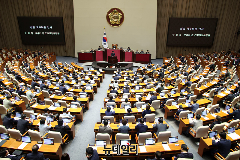 구윤철 부총리 겸 기획재정부 장관이 23일 오후 국회에서 열린 본회의에서 신임 국무위원 인사를 하고 있다.
