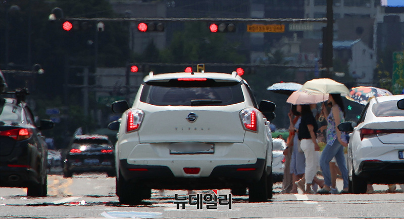 서울 전역에 폭염경보가 내려진 가운데 24일 오후 서울 종로구 한 도로에 아지랑이가 피어오르고 있다.