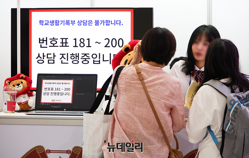 수험생과 학부모들이 24일 오후 서울 강남구 코엑스에서 열린 '2026학년도 수시대학입학정보박람회'에서 상담을 받고 있다.