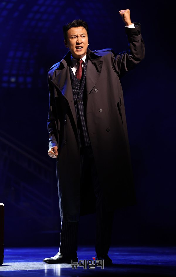 줄리안마쉬 역을 맡은 배우 박건형이 24일 오후 서울 송파구 샤롯데씨어터에서 열린 뮤지컬 '브로드웨이42번가' 프레스콜에서 하이라이트 장면을 시연하고 있다.'브로드웨이 42번가'는 1930년대 미국 경제 대공황기, 스타 연출가 줄리안 마쉬가 뮤지컬 '프리티 레이디'를 무대에 올리는 과정에서 새로운 스타가 탄생하는 이야기를 그린다.배우 양준모·박칼린·박건형·정영주·최현주·윤공주·유낙원·최유정·장지후·기세중·전수경·백주희 등이 출연한다. 9월 14일까지 공연.