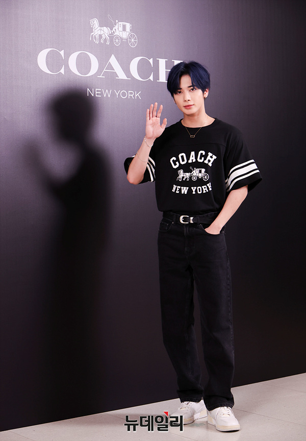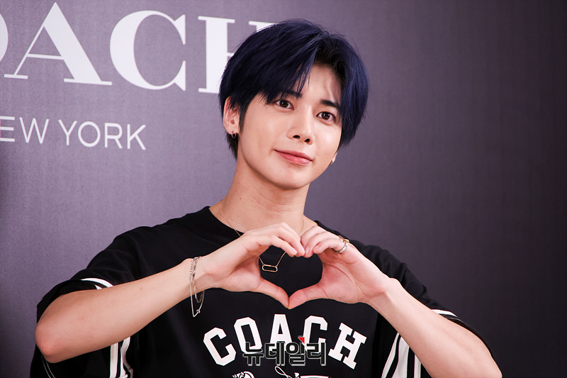 투모로우바이투게더 태현이 25일 오전 서울 여의도 더현대 서울에서 열린 코치(COACH) 매장 오픈 기념 포토월에서 포즈를 취하고 있다.