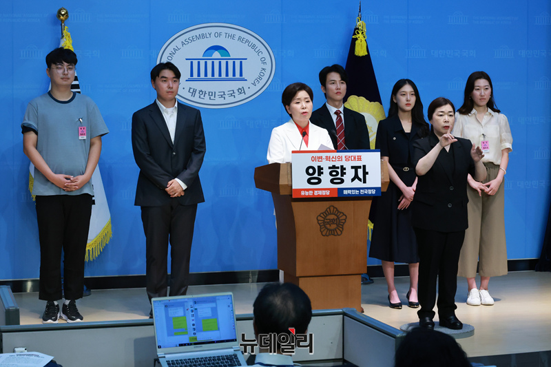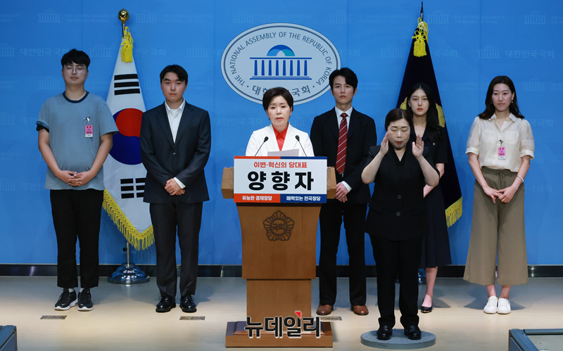 양향자 전 의원이 28일 오전 서울 여의도 국회 소통관에서 국민의힘 8·22 전당대회 당대표 출마 선언을 하고 있다.