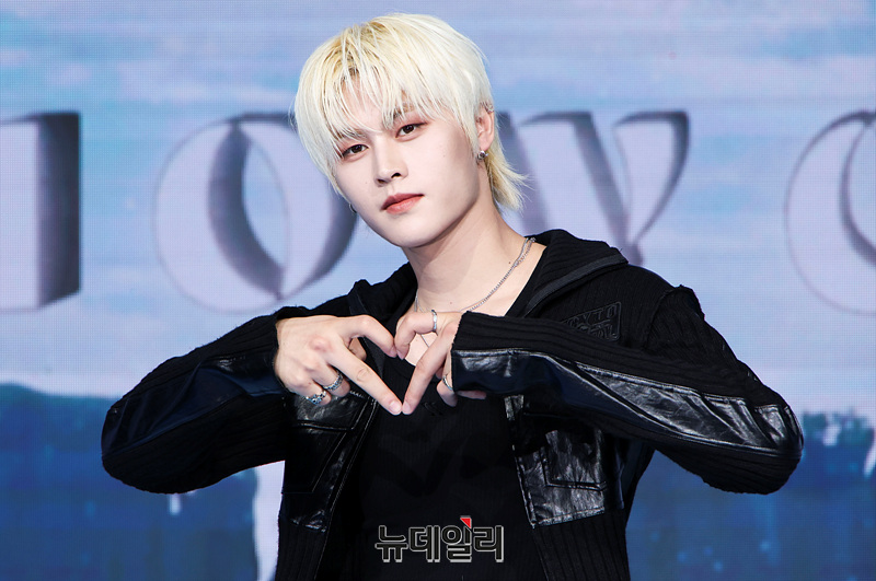 그룹 세븐투에잇(SEVENTOEIGHT) 엠이 28일 오후 서울 마포구 쇼킹케이팝센터에서 열린 데뷔 쇼케이스에서 포즈를 취하고 있다.