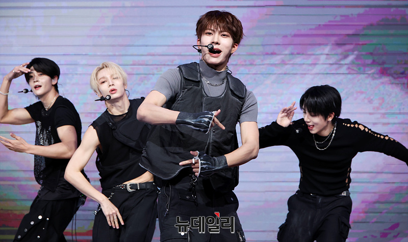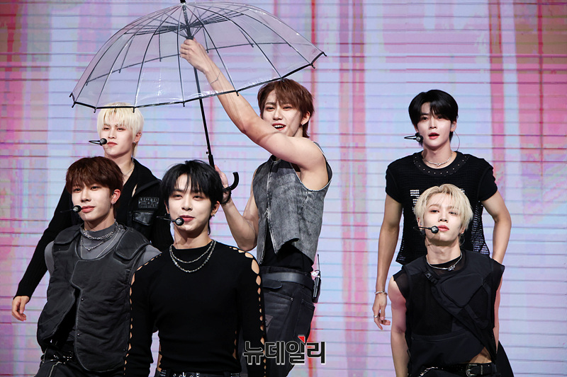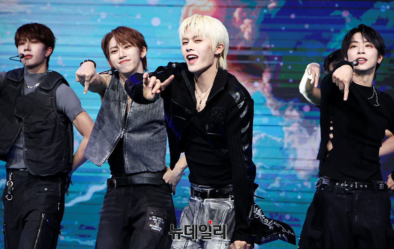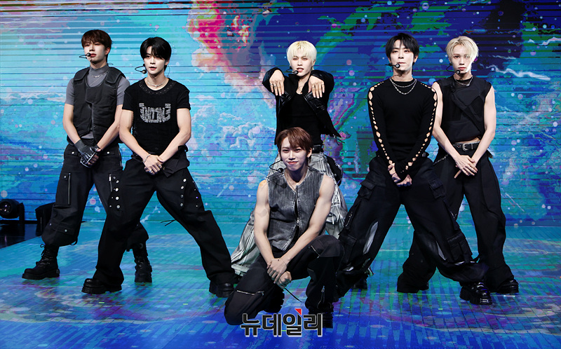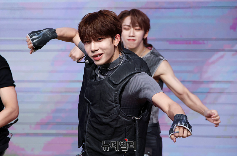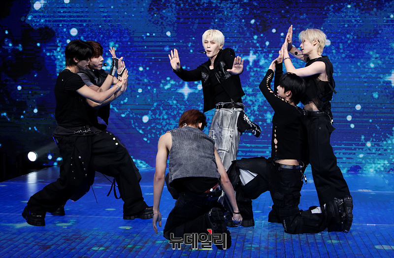 그룹 세븐투에잇(SEVENTOEIGHT) 치원, 디옴, 엠, 쿄준, 재거, 엑시이 28일 오후 서울 마포구 쇼킹케이팝센터에서 열린 데뷔 쇼케이스에서 무대를 선보이고 있다.