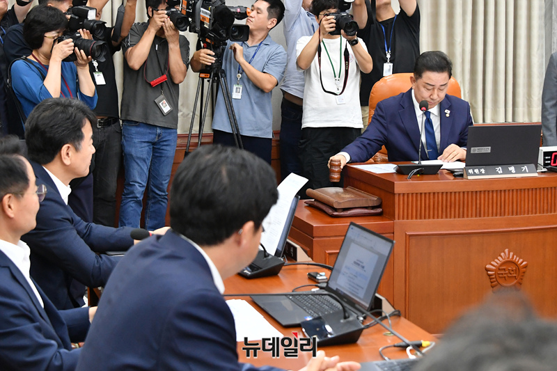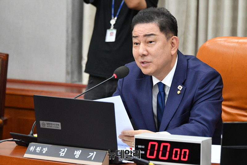 김병기 국회 운영위원장이 29일 오전 국회에서 열린 운영위원회 전체회의에서 의사진행을 하고 있다.