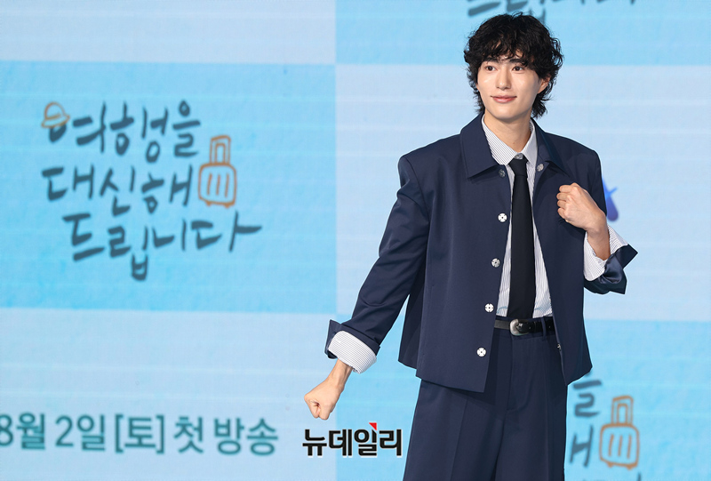 배우 오현중이 29일 오후 서울 마포구 쇼킹케이팝센터에서 열린 채널A 새 토일드라마 ‘여행을 대신해 드립니다(연출 강솔, 극본 정회현) 제작발표회에서 포즈를 취하고 있다.'여행을 대신해 드립니다'는 한 번도 센터였던 적 없는 아이돌 출신 여행 리포터가 의뢰받은 여행들을 대신해주며 진정한 성공과 삶의 의미를 깨닫는 과정을 그린 힐링 트립 감성 드라마. 일본 베스트셀러에 올랐던 하라다 마하 작가의 동명 소설을 원작으로 했다.배우 공승연, 유준상, 김재영, 홍수현, 오현중 등이 출연한다. 8월 2일 첫 방송.