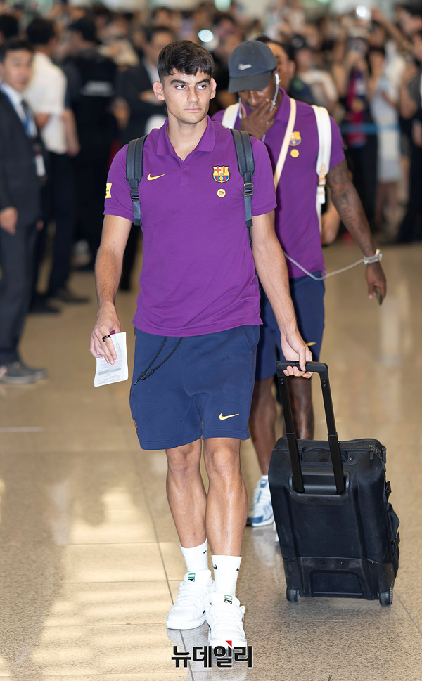 제라르 마르틴 FC 바르셀로나 선수가 29일 오후 인천국제공항 제2여객터미널을 통해 입국하고 있다.