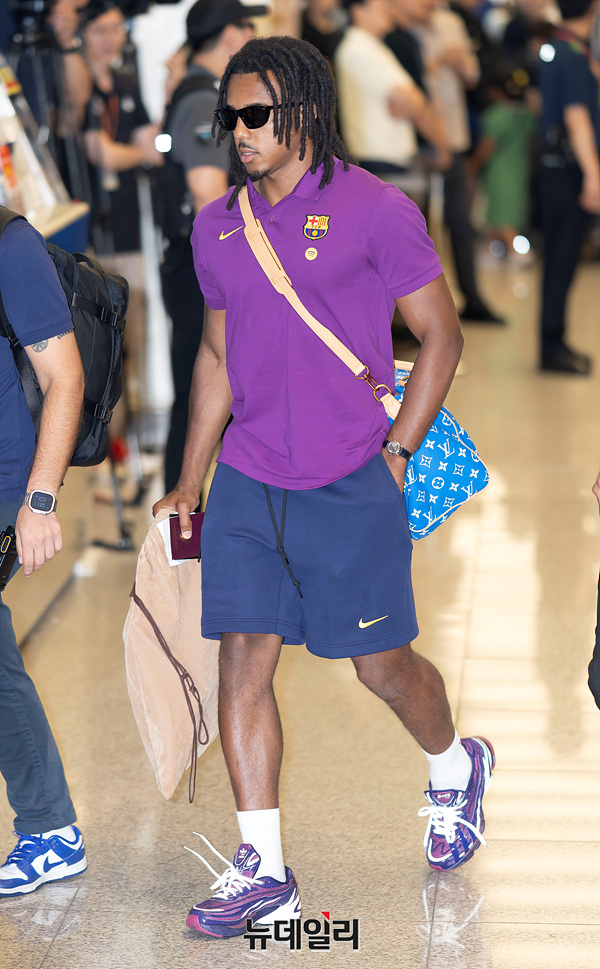 쥘 쿤데 FC 바르셀로나 선수가 29일 오후 인천국제공항 제2여객터미널을 통해 입국하고 있다.