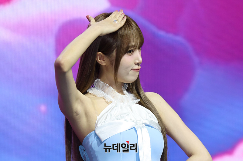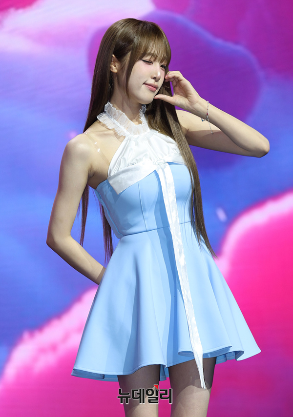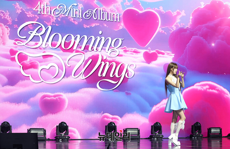 가수 YENA(최예나)가 29일 서울 용산구 블루스퀘어에서 열린 네번째 미니앨범 'Blooming Wings(블루밍 윙즈)' 쇼케이스에서 포즈를 취하고 있다.