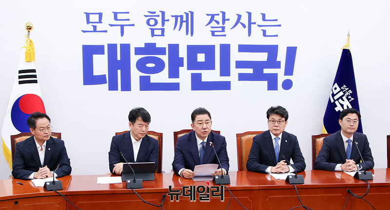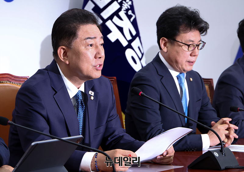 김병기 더불어민주당 당대표 직무대행 겸 원내대표가 31일 오전 국회에서 열린 정책조정회의에서 모두발언을 하고 있다.