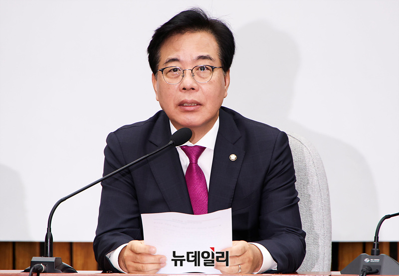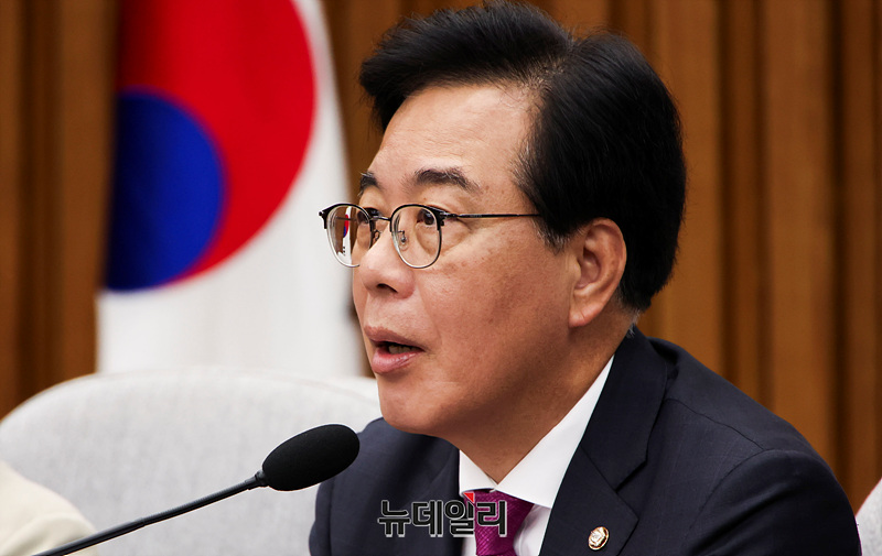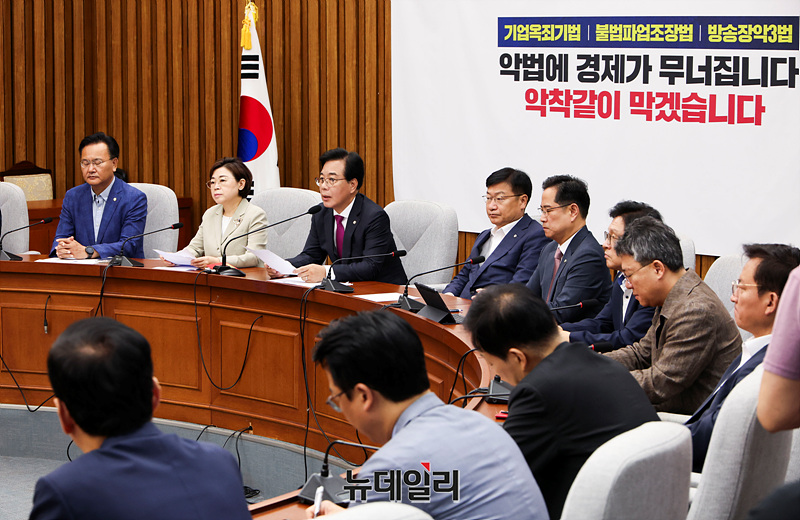 송언석 국민의힘 비상대책위원장 겸 원내대표가 1일 오전 국회에서 열린 원내대책회의에서 모두발언을 하고 있다.