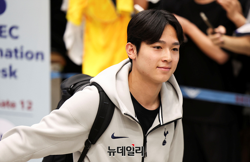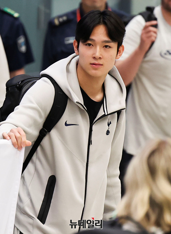 양민혁 토트넘 홋스퍼 선수가 1일 오후 인천국제공항 제1여객터미널을 통해 입국하고 있다.