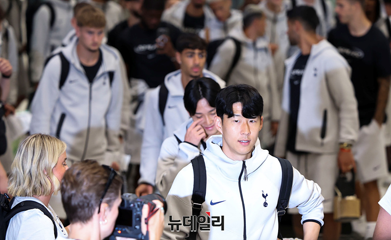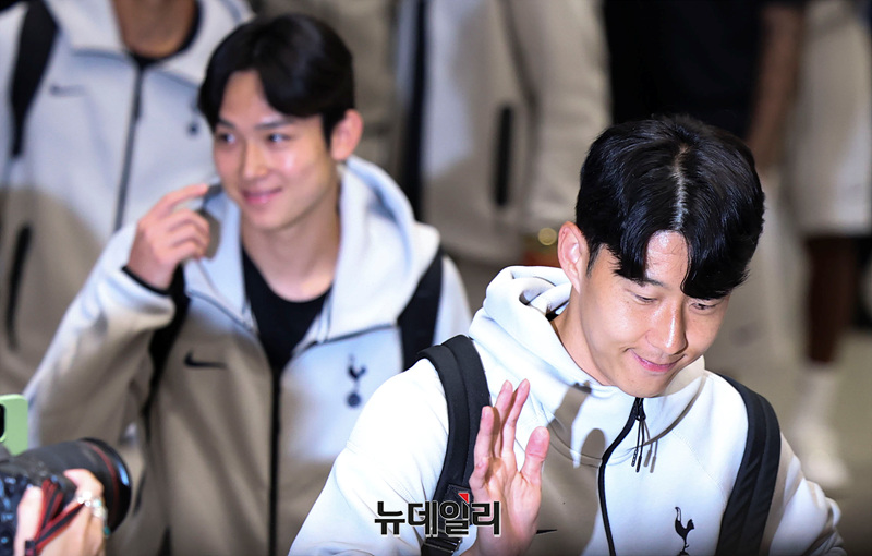 양민혁, 손흥민 토트넘 홋스퍼 선수가 1일 오후 인천국제공항 제1여객터미널을 통해 입국하고 있다.