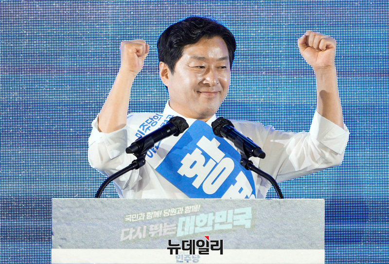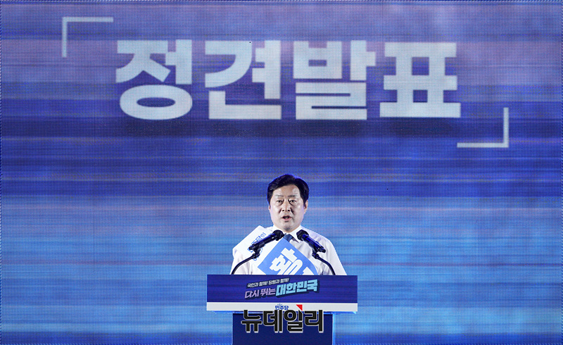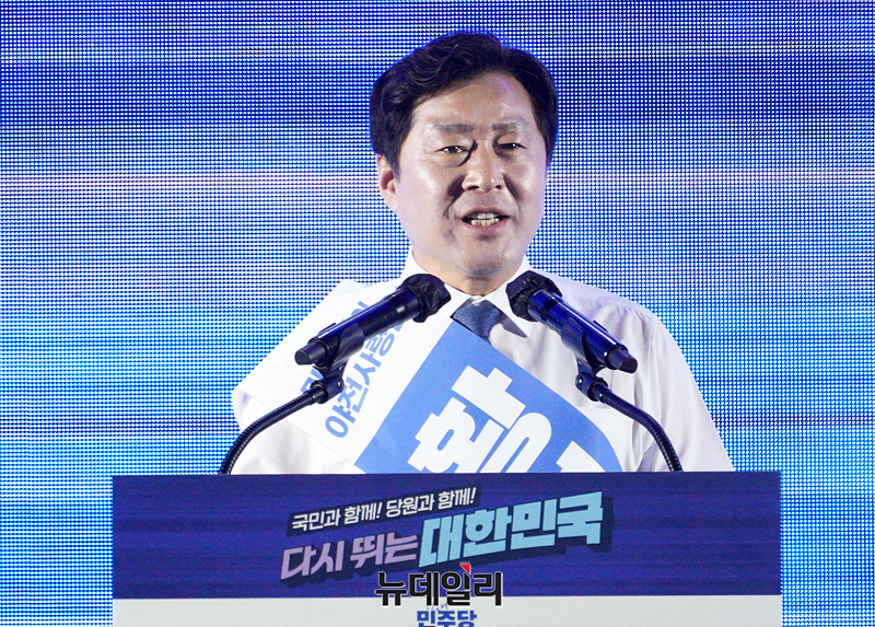 황명선 더불어민주당 최고위원 후보가 2일 오후 경기 고양시 킨텍스 제2전시장에서 열린 제2차 임시전국당원대회에서 정견발표를 하고 있다. (경기 고양=서성진 기자)