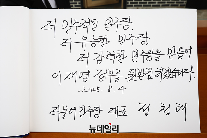 [포토] 방명록 작성하는 정청래 대표