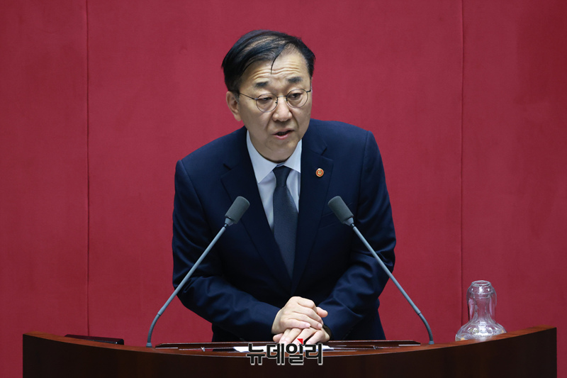 김윤덕 국토교통부 장관이 4일 오후 국회에서 열린 본회의에서 인사말을 하고 있다.