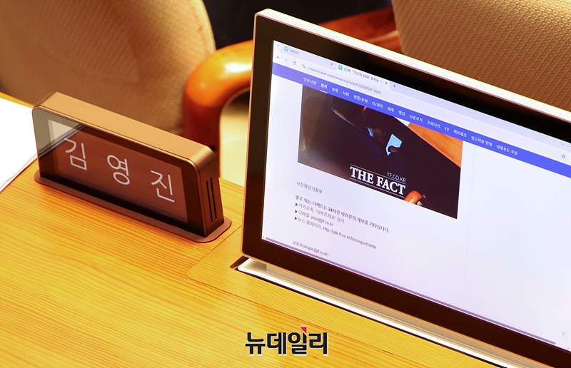 [포토] '이춘석 주식' 관련 기사 읽는 김영진 의원