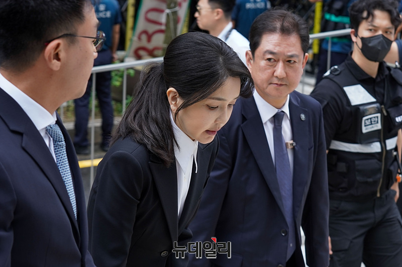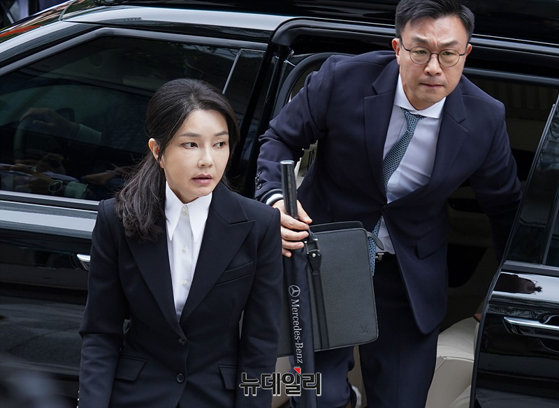 윤석열 전 대통령 배우자 김건희 여사가 6일 오전 서울 종로구 KT광화문빌딩 웨스트에 마련된 민중기 특별검사팀 사무실에 피의자 신분으로 출석하고 있다. (사진=공동취재단)