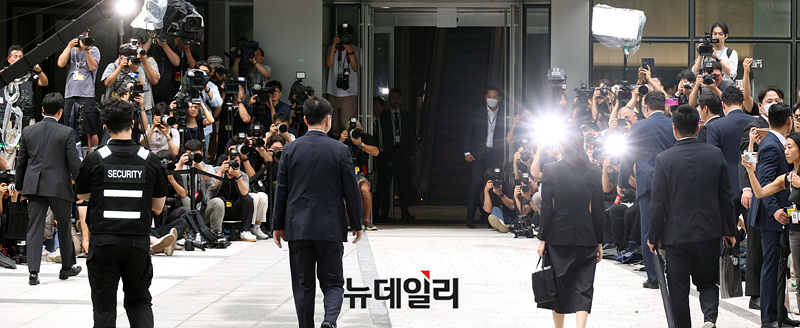 윤석열 전 대통령 배우자 김건희 여사가 6일 오전 서울 종로구 KT광화문빌딩 웨스트에 마련된 민중기 특별검사팀 사무실에 피의자 신분으로 출석하고 있다. (사진=공동취재단)