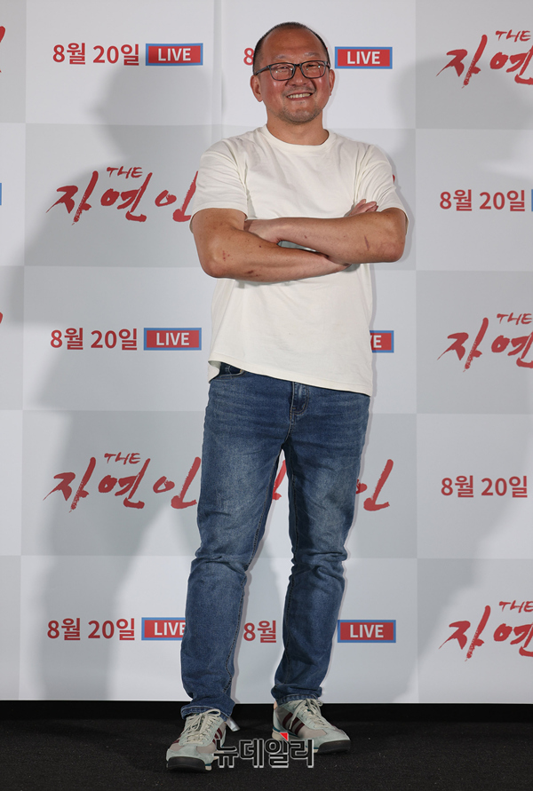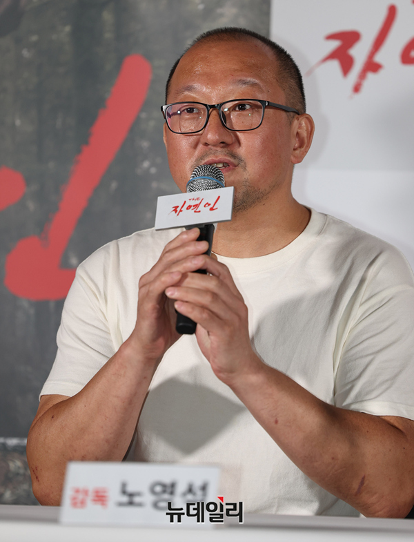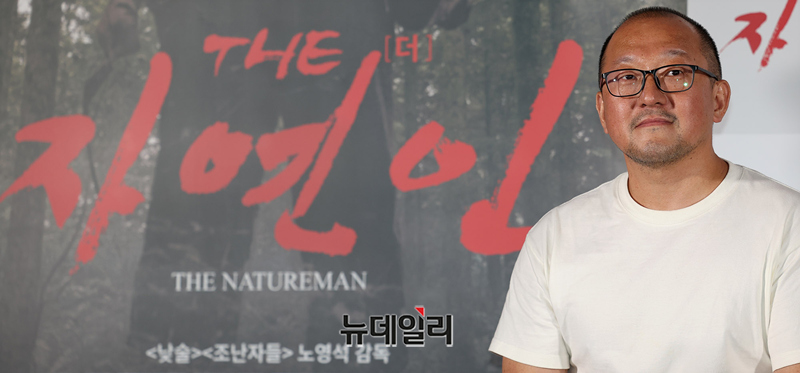 노영석 영화감독이 7일 오후 서울 CGV용산아이파크몰에서 열린 영화 'THE 자연인(감독 노영석)' 언론시사회에서 작품소개를 하고 있다.미스터리 팝업 코미디 'THE 자연인(The Natureman)'은 낮술(2009), 조난자들(2014)의 노영석 감독이 11년 만에 선보이는 3번째 장편영화로 제49회 서울독립영화제(2023) 대상을 수상한 작품이다.신예 배우 변재신과 정용훈, 노련한 중견 신운섭과 이란희 배우가 첩첩산중 오지에서 먹고, 구르고, 뛰며 실제 괴랄한 서바이벌을 벌인 코미디 영화. 자극적인 가짜를 진짜처럼 연기하는 사람들, 그 세계를 향한 통렬한 현실 풍자를 담았다. 8월 20일 극장 개봉.