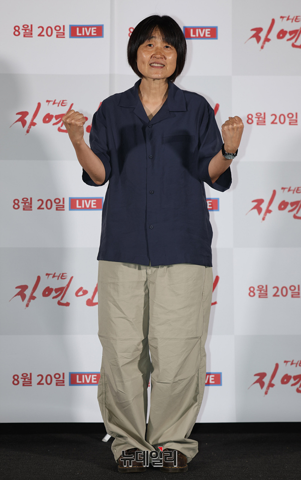 배우 겸 감독 이란희가 7일 오후 서울 CGV용산아이파크몰에서 열린 영화 'THE 자연인(감독 노영석)' 언론시사회에서 인사말을 하고 있다.미스터리 팝업 코미디 'THE 자연인(The Natureman)'은 낮술(2009), 조난자들(2014)의 노영석 감독이 11년 만에 선보이는 3번째 장편영화로 제49회 서울독립영화제(2023) 대상을 수상한 작품이다.신예 배우 변재신과 정용훈, 노련한 중견 신운섭과 이란희 배우가 첩첩산중 오지에서 먹고, 구르고, 뛰며 실제 괴랄한 서바이벌을 벌인 코미디 영화. 자극적인 가짜를 진짜처럼 연기하는 사람들, 그 세계를 향한 통렬한 현실 풍자를 담았다. 8월 20일 극장 개봉.