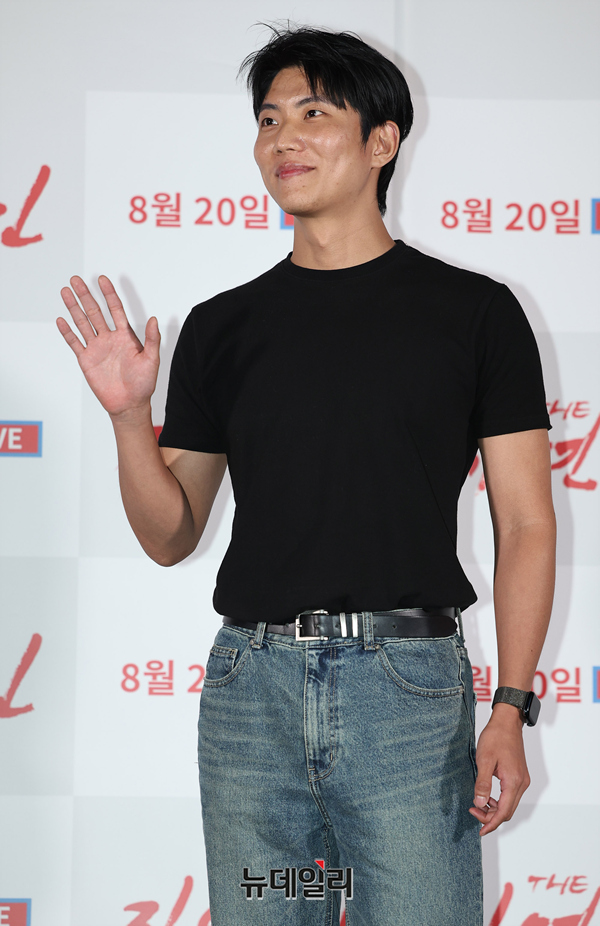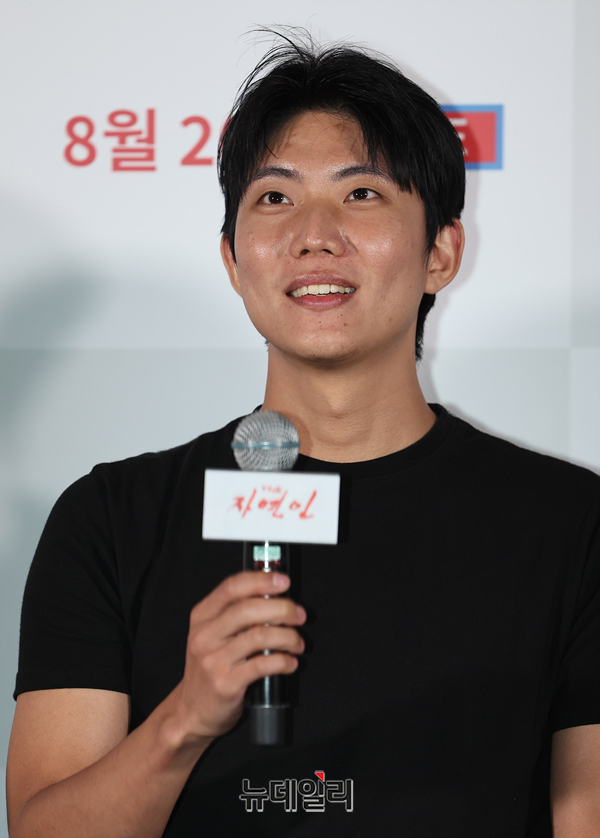배우 변재신이 7일 오후 서울 CGV용산아이파크몰에서 열린 영화 'THE 자연인(감독 노영석)' 언론시사회에서 인사말을 하고 있다.미스터리 팝업 코미디 'THE 자연인(The Natureman)'은 낮술(2009), 조난자들(2014)의 노영석 감독이 11년 만에 선보이는 3번째 장편영화로 제49회 서울독립영화제(2023) 대상을 수상한 작품이다.신예 배우 변재신과 정용훈, 노련한 중견 신운섭과 이란희 배우가 첩첩산중 오지에서 먹고, 구르고, 뛰며 실제 괴랄한 서바이벌을 벌인 코미디 영화. 자극적인 가짜를 진짜처럼 연기하는 사람들, 그 세계를 향한 통렬한 현실 풍자를 담았다. 8월 20일 극장 개봉.
