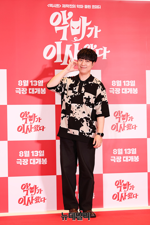 방송인 궤도가 7일 오후 서울 용산구 CGV 용산아이파크몰에서 열린 영화 '악마가 이사왔다'' VIP 시사회 포토월에서 포즈를 취하고 있다.