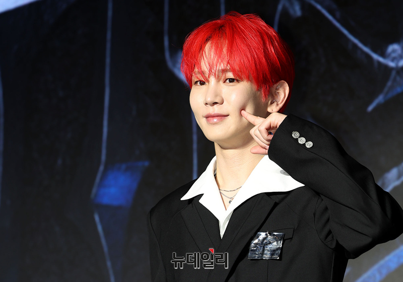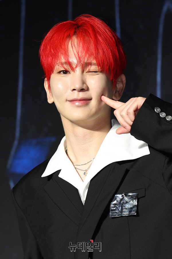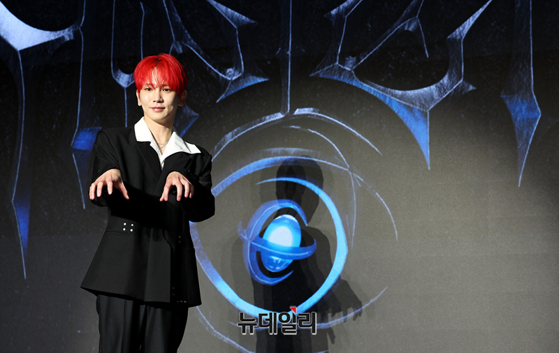 가수 키가 11일 오후 서울 광진구 풀만 앰배서더 서울 이스트폴 브로드웨이에서 열린 정규 3집 'HUNTER(헌터)' 발매 기념 기자간담회에서 포즈를 취하고 있다.