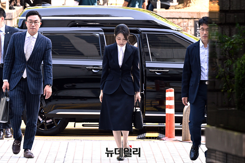 윤석열 전 대통령 부인 김건희 여사가 12일 오전 서울 서초구 서울중앙지법에서 열린 구속 전 피의자 심문(영장실질심사)에 출석하고 있다.