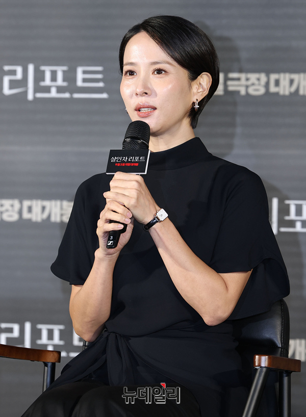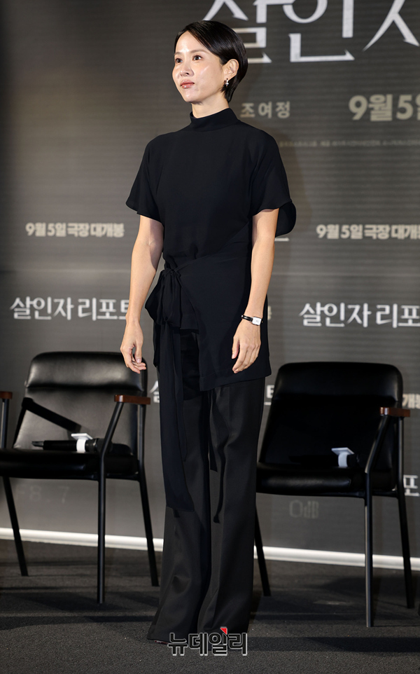 배우 조여정이 12일 오전 서울 CGV용산아이파크몰에서 열린 영화 '살인자 리포트(감독 조영준)' 제작보고회에서 작품 소개를 하고 있다.