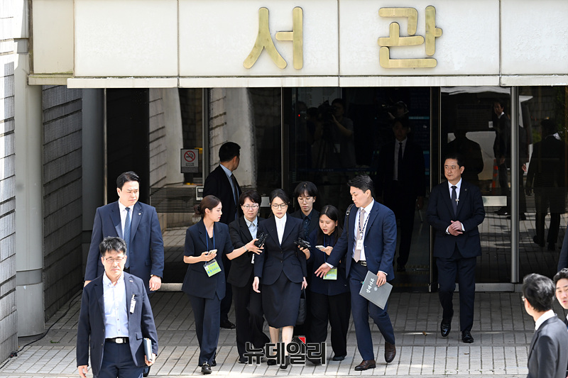 윤석열 전 대통령 부인 김건희 여사가 12일 오후 서울 서초구 서울중앙지법에서 열린 구속 전 피의자 심문(영장실질심사)을 마치고 법원을 나서고 있다. (사진=공동취재단)