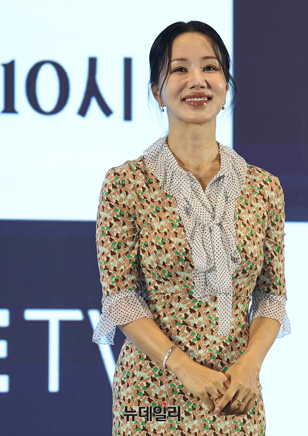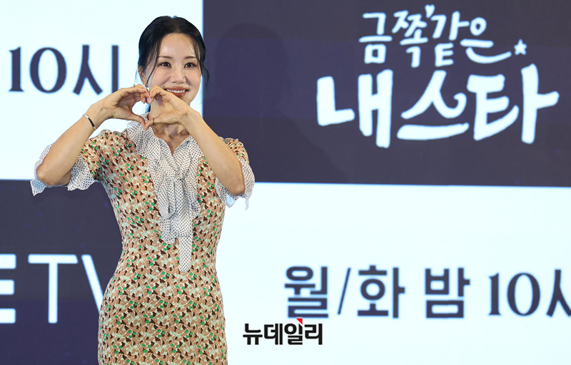배우 엄정화가 12일 오후 서울 구로구 신도림 디큐브시티 더 세인트에서 열린 지니 TV 오리지널 '금쪽같은 내 스타(극본 박지하, 연출 최영훈)' 제작발표회에서 포즈를 취하고 있다.