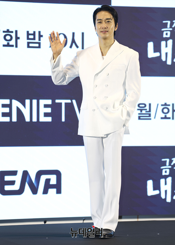 배우 송승헌이 12일 오후 서울 구로구 신도림 디큐브시티 더 세인트에서 열린 지니 TV 오리지널 '금쪽같은 내 스타(극본 박지하, 연출 최영훈)' 제작발표회에서 포즈를 취하고 있다.